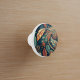This abstract ethnic pattern cabinet knob features swirls of feathers, flowers, and paisley like shapes n dusty teal, terra cotta, rust, deep blue green, and cream. This vintage style print would fit a variety of decor colors and styles, with a pattern with bold swirls in muted tones.