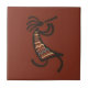 Native American Kokepelli Dancer Dark Red Ceramic Tile