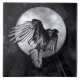 A magical raven or crow and moon art tile. The raven has mystical qualities in many different cultures. The black bird is phenomenally intellectual and clever.
