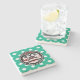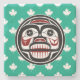 Serve your drinks on this great limestone stone coaster with a beautiful Haida Weeping Skull from British Columbia, Canada. The background is green with a pattern of white maple leaves.