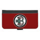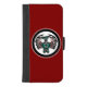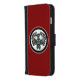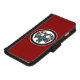 Keep your Apple iPhone safe with this Wallet Case with a great Haida art Thunderbird. The background is a deep red.