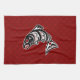 Gift your friend this towel with a beautiful Haida Salmon from British Columbia, Canada. The background is a deep red.