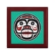 Buy for your friend this gift box with a beautiful Haida Weeping Skull from British Columbia in red, black and white. The background is green.