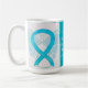 Native American Reparations uses a blue turquoise awareness ribbon to show support for its awareness. This custom mug features blue turquoise awareness ribbon guardian angel art paintings with the message "I Hope and Support Native American Reparations Awareness!" The custom blue turquoise awareness guardian angel ribbon art picture coffee cups or mugs can be customized with personalized messages to make great cause mugs for awareness fundraisers, awareness cup gifts, or other special events or cause support occasions. Make your own customized words for a personal message of hope and support to share!