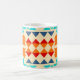 Native american seamless pattern of rhombus and triangle combinations in full color, blue, light blue, orange, red orange, cream background.
