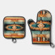 Striking Native American Southwest design oven mitt and pot holder set in shades of tan, orange, blue and black. Can be purchased separately or as a set. Matching apron is available in our shop too!