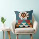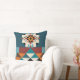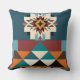 Native American Southwestern Tribal Design throw pillow in traditional turquoise, teal and terra cotta color scheme, with a solid matching blue reverse side. The artwork features symbols used by Pueblo, Navajo and other Native American peoples to represent natural landforms, the sun and stars, weather, and more. This decorative southwestern style pillow will accentuate any western themed room's decor.