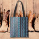 A Native American vertical stripe pattern in teal, purple, white, and black. This tote is perfect for people who love Southwestern and Native American