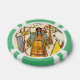 These poker chips have a scene in the woods with a Native American Woman holding a bow and arrows by trees and a waterfall done in a faux embroidered look on the front and the back.