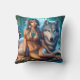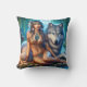 Native American Woman Sitting Beside A Wolf Throw Pillow