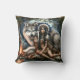 Native American Woman Sitting By A Wolf Fireside Throw Pillow