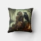 A Native American woman in traditional attire sits near a riverbank, accompanied by a raven, surrounded by a serene, misty landscape.