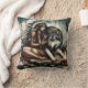 Native American Woman With Wolf Near Campfire Throw Pillow