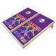 Natural Wood Cornhole Set, Yellow and Purple bags