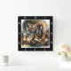 Find native calm, tiger's presence forest dawn. This timepiece welcomes a new day with tranquility. Welcome dawn's light of tranquility with this enchanting timepiece, where the still pond spirit reveals every detail. Witness the profound connection between a young, beautiful Native Indian woman and a powerful Bengal tiger, their stillness a reflection of nature's quiet strength. Willow leaves rustle gently in the morning breeze, while the warm glow of a campfire paints a comforting scene on their rocky perch. A serene pond reflects the ethereal beauty of their shared moment, carrying the subtle scent of morning mist and damp earth. Feel the tranquil magic of a timeless scene, and express your soul with our Design Tool. Personalize the numerals and hands to create a personal sanctuary, a haven of peace in any room.