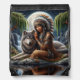 Native Indian and wolf share moonlight Drawstring Bag