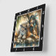 Feel native presence, tiger's stalk forest's hush. This timepiece reflects the silent power of the wild. Witness the profound bond between a young, beautiful Native Indian woman and a powerful Bengal tiger, their presence a testament to nature's enduring harmony. Willow branches sway in the gentle breeze, while the warm embrace of a campfire casts a comforting glow on their rocky perch. A serene pond reflects the ethereal beauty of their shared moment, carrying the subtle scent of woodland herbs. Feel the quiet magic of a timeless scene, and express your soul with our Design Tool. Customize the numerals and hands to create a personal sanctuary, a haven of peace in any room.