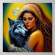 Native woman and wolf poster