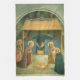 Nativity by Fra Angelico, c.1440 features the holy child (Jesus Christ) lying in a manger with his parents (Mary and Joseph), surrounded by shepherds, animals, and wise men adoring him. Mary Magdalene and Joseph are adorned with halos, while Joseph appears aged and has soft grey facial hair that reveals weariness.