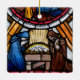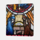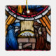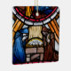 Stained glass image of the Nativity of Christ, featuring Mary and Joseph