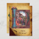 NATIVITY PARCHMENT Blue Sapphire Monogram Holiday Postcard