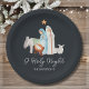 Charming, dark blue Nativity religious Christmas paper plates feature a beautiful watercolor Nativity scene. They are perfect for sharing the season's joy with those closest to you. The words "O Holy Night" are elegantly written below the scene, representing the magic and wonder of Christmas.