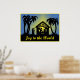 I had really wanted to do some old-fashioned silhouette style art of the Nativity, and this became my first silhouette design! Black silhouettes form the scene of the Nativity, with Baby Jesus, Mary and Joseph featured in the center. A blue and golden yellow background make the golden tones highlight the area around the manger.