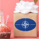 Features the flag of NATO (North Atlantic Treaty Organisation" in blue and white.