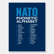 Clean and bold educational wall art featuring the complete NATO phonetic alphabet from Alfa to Zulu.