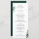 Natural botanical watercolor greenery. Modern and elegant signature calligraphy graphic "Menu", chic typography template with multiple lines for your custom menu items. Backing color shown in dark forest green can be customized.