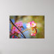 A tree twig with three pink sakura flowers and three buds. A smooth background of pink cherry blossoms, greenish foliage, and blue sky. A natural artistic composition. An extra-large digital painting from a photograph. Awesome floral stretched canvas print to decorate your place or to be used as a gift on weddings, birthdays, baby showers, or any other event. You can transfer this design to a variety of affordable products, including faux wrapped canvas print, poster, acrylic, metal, wood wall art, triptych, tapestry, a plaque with easel, photo block, puzzle, postcard, flat, and magnetic cards, magnet, wall clock, throw pillow, blankets, ceramic tile, keepsake box, trinket tray, trivet, coasters of any kind, playing cards. Just choose the product from the scrollable option "Transfer design to a product". This design is open for customization. Just use the "Personalize", or "Edit design" (as the case may be) button of the blue color, or the link "Details" --> "Click to customize further". You will be transferred to the "Design Tool" page where you can easily use the "FILL/FIT" option to ADJUST THE DESIGN TO THE SIZE AND SHAPE of the product, rotate it, mirror, and change the type, color of the font (if any), or to add your own text from the scratch. Just be creative, customize, buy one, have fun and be happy!