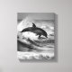 This natural dolphin playing in the waves in black and white is perfect for your office or home.