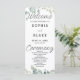 To add a touch of romance and refinement, the words "Welcome," "Ceremony," and "Wedding Party" are delicately rendered in a pretty decorative script font. This script font elevates these key elements, infusing the program with a sense of grace and elegance. The script font serves as a visual focal point, enhancing the overall beauty of the program and adding a touch of personalized charm to your wedding day.