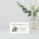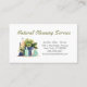 Simple cute and attractive professional all natural cleaning supplies maid business card. Features a botanical leaf bucket, broom and spray bottle logo graphic. Personalize this with your own cleaning service business name and details to make it your own.