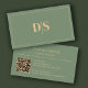 Natural Minimalist Muted Green Initials QR Code Business Card