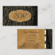 Make a lasting impression with this modern and elegant business card design featuring a rustic tree bark with a natural wood grain and a oval shimmery gold border.