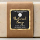 a luxury label for natural soap with a black background and gold border. This label measures 1.5 inches by 1.5 inches and contains space for your business name, logo, product scent or type, and product weight.