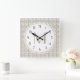 Natural | White Greek Key Pattern Monogram Square Wall Clock