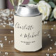 Natural White Script Minimalist Wedding Can Cooler
