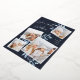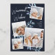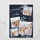 Our beautiful rustic chic holiday photo card features four of your favorite square family photos in a collage layout. "Warmest Wishes" appears at the top in hand lettered silver foil script typography on a navy background accented with icy blue watercolor botanical foliage for a beautiful nature-inspired look. Customize with your family name and the year.