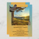 Retirement party invitation featuring a sunrise over the hills with a hawk and lantern. Great for someone who loves the outdoors, camping in nature and/or birdwatching. Let the adventure begin!