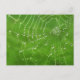 The beauty of nature - macro image of a cobweb with morning dew droplets on green background.
