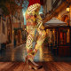 The dainty interlinked rosette design at the waist is truly unique. The poly-spandex makes for a nice fit and available in sizes 0-16. The printing is vibrant and eye-catching.