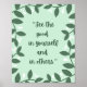 Brighten up any room with this inspirational poster featuring the motivational quote, "See the good in yourself and in others." Set against a calming green background with a nature-inspired leafy border, this poster is perfect for adding a touch of positivity to your home, office, or any space where a little encouragement is needed. The soothing colors and uplifting message make it a great reminder to focus on the positive aspects of life and to spread kindness.