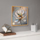 A stylized lotus flower with golden accents, its petals unfolding in clean, elegant lines. This design symbolizes purity, enlightenment, and rebirth, set against a soft, textured background for a serene, transformative feel. "Original Image was generated by Meta AI. AI generated artwork. Licensed under CC BY-SA 4.0."