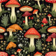 Whimsical mushroom illustrations with moss, ferns, and wildflowers
