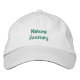 The words Nature Journey embroidered on a hat