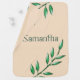 Welcome the newest addition to your circle of family and friends with a personalized nursery baby blanket. This warm and soft blanket is perfect for a nature-themed baby nursery and is adorned with bright green leaves and branches. The baby's name is featured on the front and the back displays "Welcome to the World" and the baby's birth date along with green leaves.