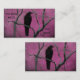 Crow surrounded by branches on pretty pink business card.