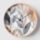 This wall clock features a modern art abstract image of several botanicals in neutral shades of muted tan or beige and gray on a white background. This pretty clock has a boho chic aesthetic and will provide a touch of nature and sophistication to any living room, den or bedroom. Available in a variety of styles and frame colors.